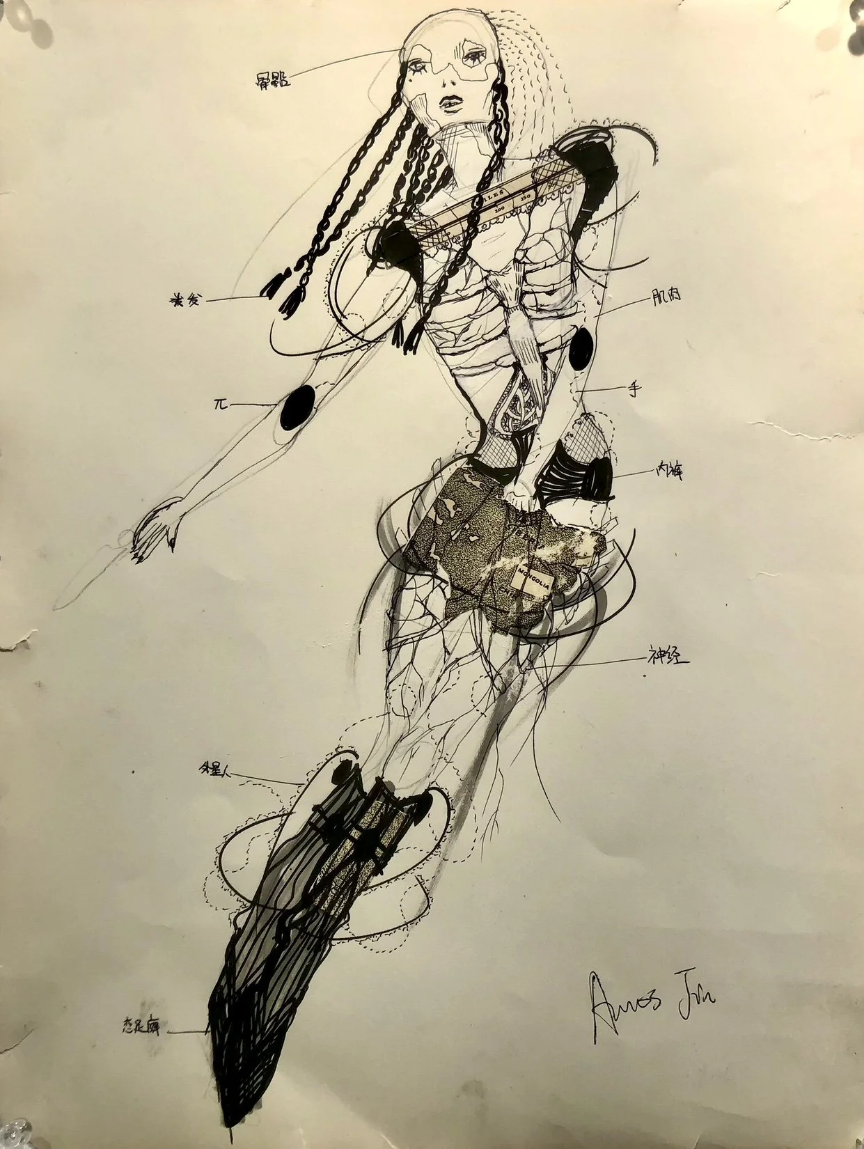 M3 , Ink pen and Collage on Paper