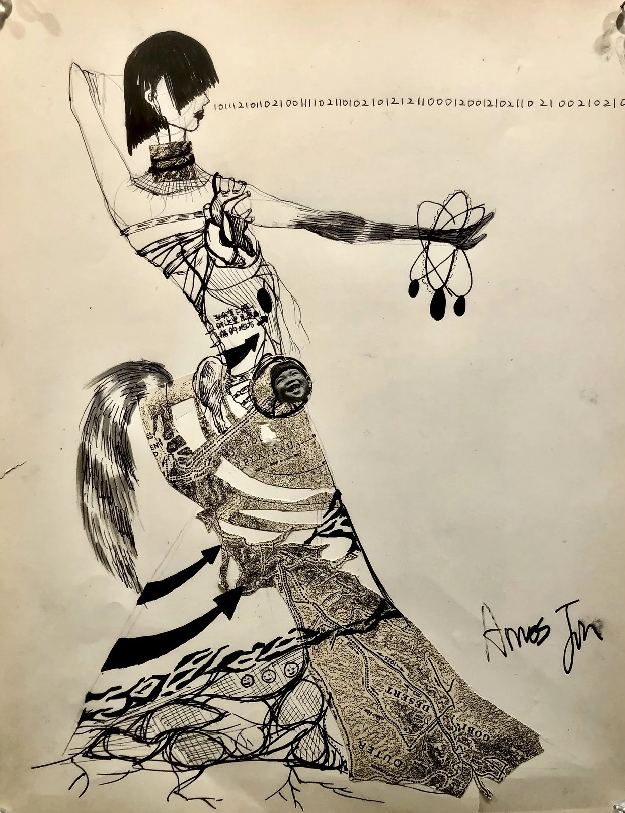 M2 , Ink pen and Collage on Paper